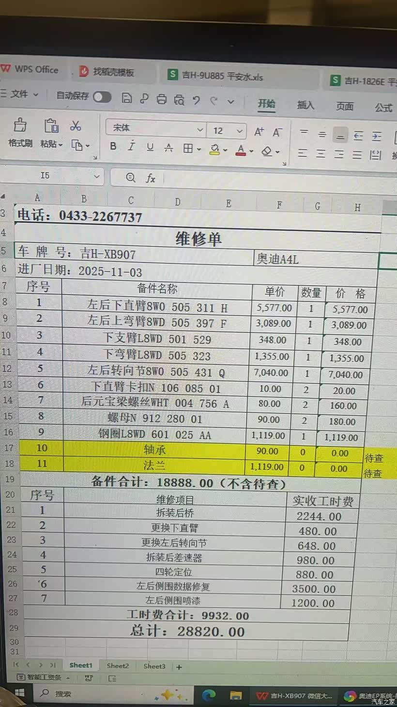 后轮外八加左后叶子板变形,还要钣金喷漆了