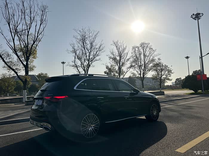 车子外观还是比较满意的,前脸流星雨大灯的加持,帅气中多了一分精气神儿。满天星中网,AMG运动套件,优雅中透着年轻活力的气息。对于中型SUV,1714mm的车高,4826mm的车长,算是BBA同级别之最,远远看去不失霸气。不过C柱顶部是有隆起,从车头站高了看车顶,并非一马平川,好在两排行李架很好的从侧面挡住了隆起部位(为了给7座第三排头部留空间,5座也是隆起的),算是完美“遮瑕”。