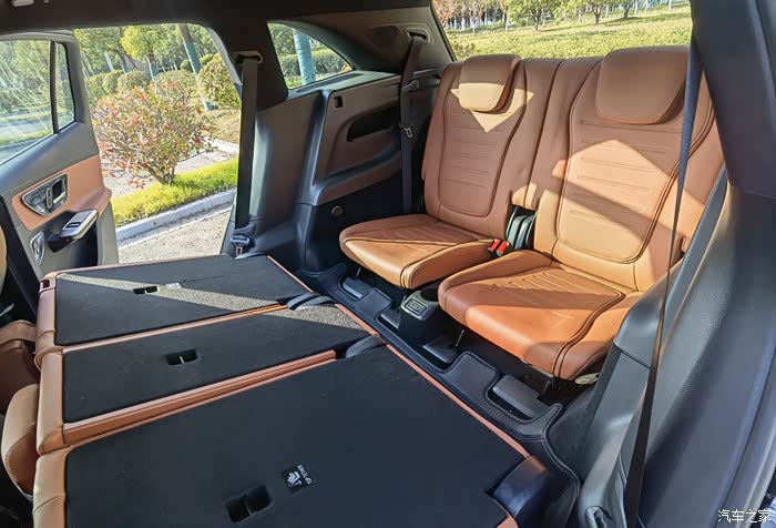 对于七座车型来说,在三排放倒的情况下,二排空间是很充裕的,跷二郎腿也是可以的。不过二排的靠背说真的比较直,最大仰角约110°,长途坐不会特别舒服,5座车型也是如此,我认为这是所有这个车子缺点里最让人不能容忍的,继续改进。