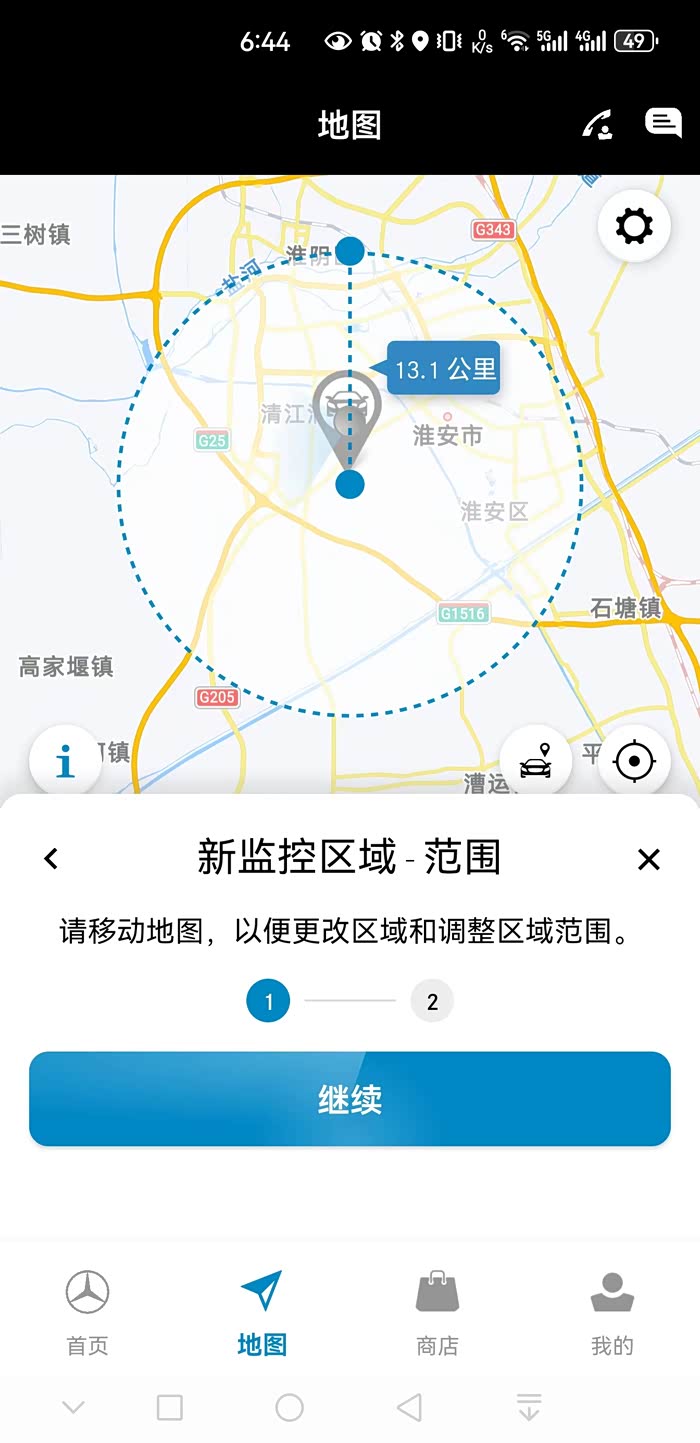 这里想重点介绍的是“地理围栏”功能,比较好实用,你可以设置车子行驶范围,车子在驶入或者驶出你设定范围后都会给你手机发送提醒,在很多特殊情况下都可以广泛使用