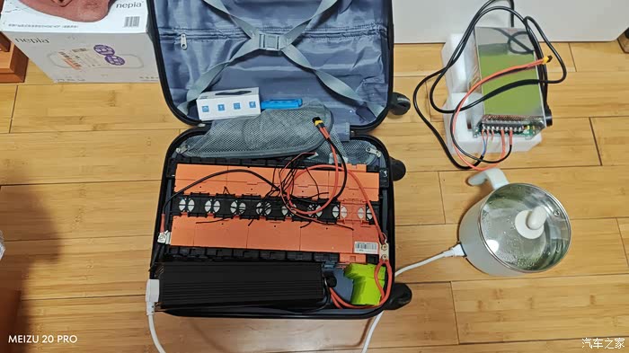 电池、电源、充电器、逆变器全在这个20寸的小箱子里。