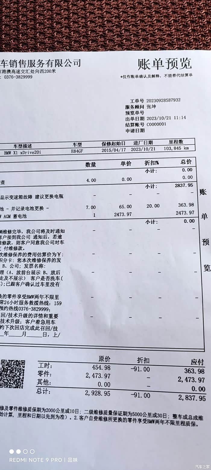 咨询一下群里的朋友,有大神说大概率是蓄电池要挂了,到本地卖电瓶实体店,骆驼启停电瓶报价9百多,包一年质保。但4S店售后有个说法,最好用原厂电瓶在4S店电脑匹配,因为宝马技术封锁相关数据没有公开,外面维修店匹配不了,会导致有些功能使用不了,或者乱报故障码!为了省心点,还是4S吧!