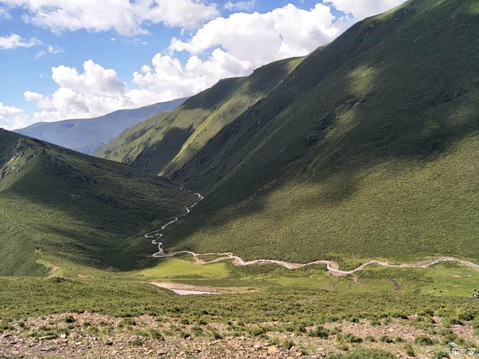 过了达扳山垭口就开始下山了,还是一望无际的草原,