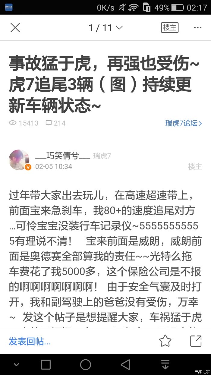看到论坛有兄弟发的事故贴,希望哥们平安!在这阅读过程中发现有问题,特提出来大家讨论!(本人看好奇瑞 不黑不污,针对事实讨论,请喷子自动靠边!)