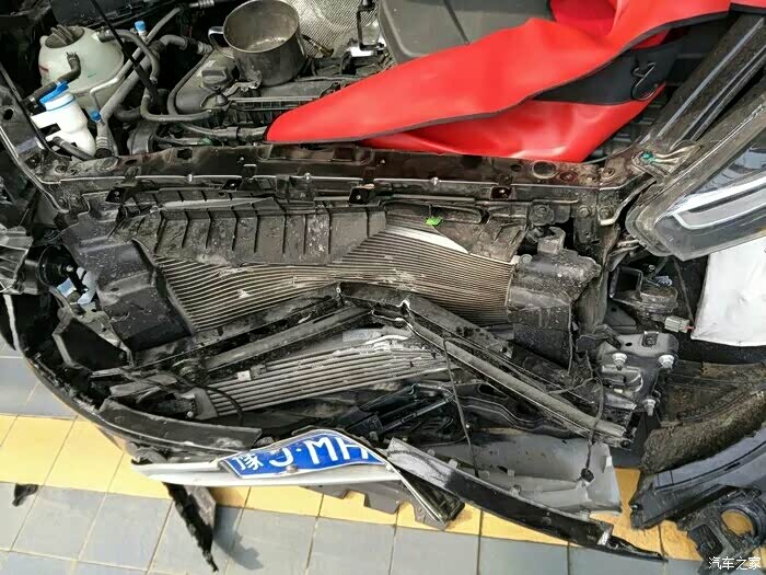 因事论事,这个前防撞梁有问题!!有没有人注意到防撞梁的吸能盒几乎没有怎么溃缩!!!