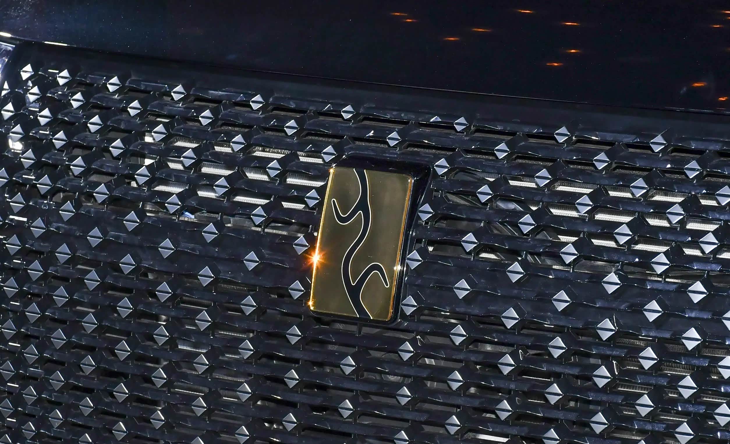 你看它那个车标,简直是豪横到家了,直接给你用24K纯金打造,明晃晃地告诉你,咱这就是奢侈品,跟别人不一样,这一下就把身份给凸显出来了,简单粗暴,但管用。