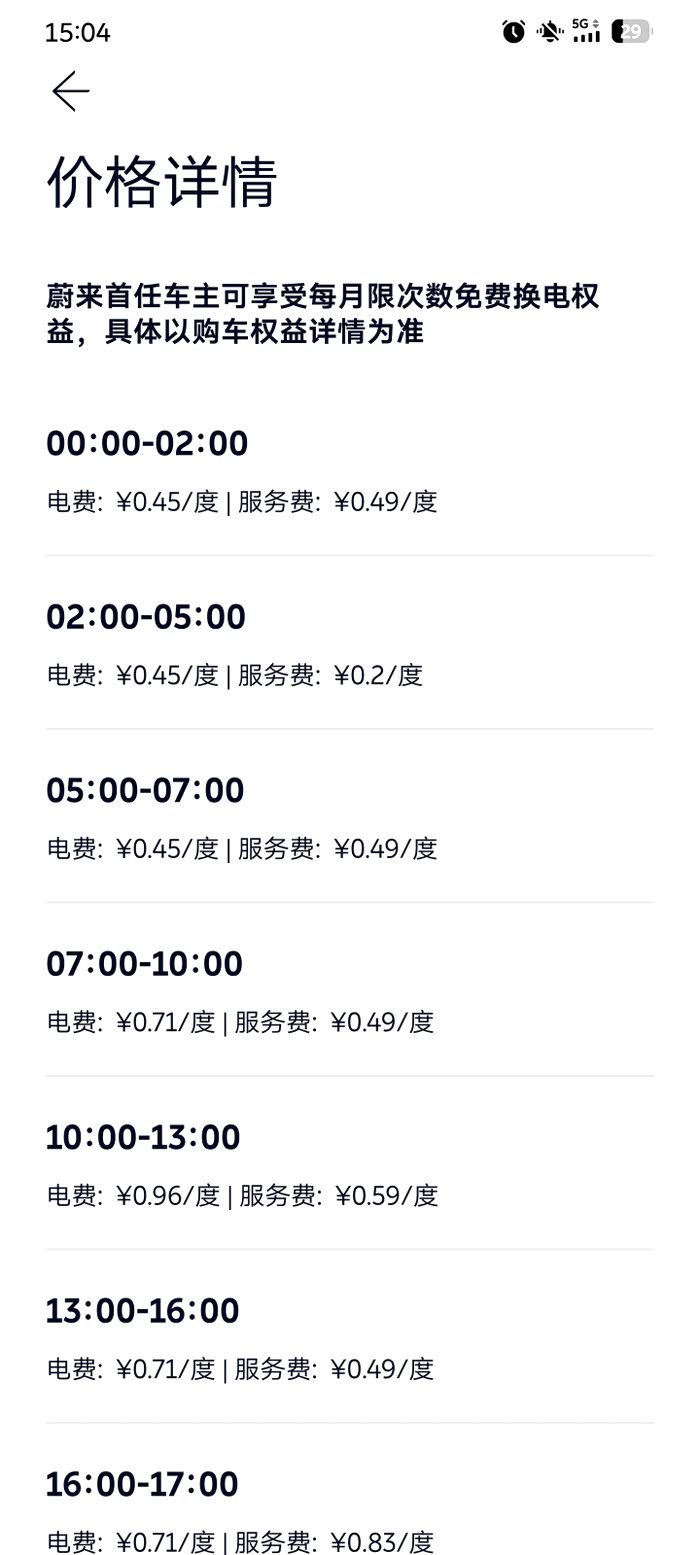 简单回顾一下,0点蔚来把换电服务费更新了,我看到的是把一个深夜,割裂成了4段,23-24,0-2,3-5,5-7,分段不同的服务费,这事儿影响太大了