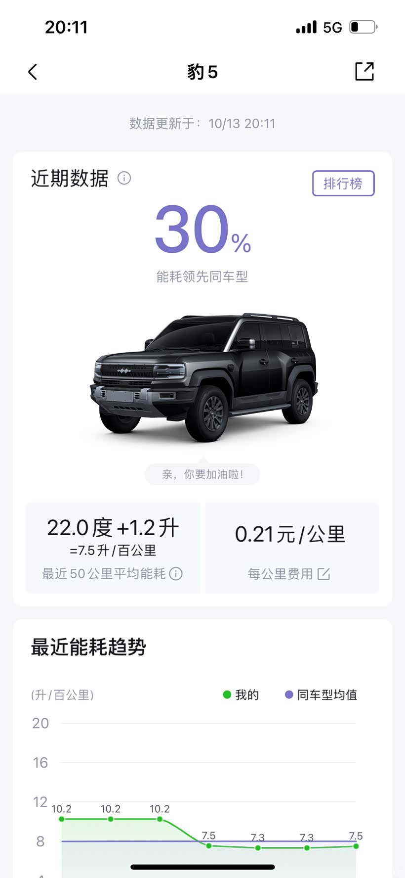 结语:豹五只要充电方便使用成本很低,如果当纯燃油车并不省油,毕竟接近三吨车重市区不会低于十个油,隔音音响配置绝对够用,动力就不用说了我在市区开了两个月飙车没输过,这车我打算开个一两年去尝试一下越野,市区开相当于只发挥了这车一半的实力,后续使用心得继续跟大家分享。