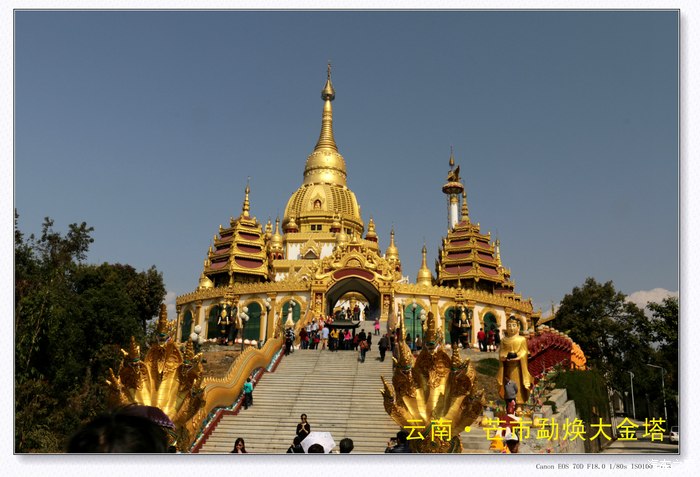 第七天(正月初四)准备返程,途径芒市参观勐焕大金塔,午后经大理杭瑞高速,夜宿大理祥云县君豪商务宾馆