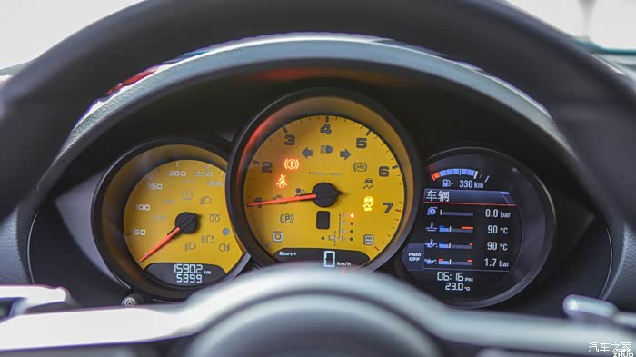 三炮筒式仪表盘设计并不浮夸,转速表位于正中间,搭配上黄色表底,看起来很具运动气息,时速表和液晶多功能显示屏分列两旁
