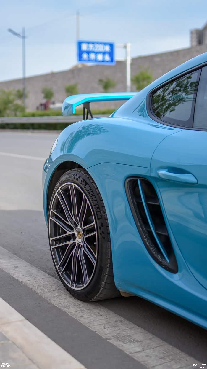 可能是因为我对718的外观印象还停留在老款的Cayman上,所以第一次近距离看实车,确实比想象中要帅了不少,而且迈阿密蓝的配色也相当亮眼,第一映像