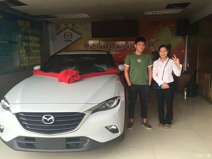 CX-4,从上市开始关注。我的三个条件。从头到尾都满足。低配价格实在也不贵,非常有性价比。除了空间和品牌。我觉得能完胜很多对手。可是,可恶,可恨的商家(这里有1万字的脏话)您大爷的竟然加价。152800蓝天活力版,落地价去到179800.(152800+2500上牌费+7000保险+13000购置税+3000装饰+杂七杂八费用1000多)4s忒狠了。我一次又一次去看。一次又一次跟销售较量。但是这奸商就是不让价。想过去佛山提。但是还有区域保护。这招真够阴的!!广州的话,又太远。怕要跑好几趟。耗不起。期间加了全国群。然后也发过帖子求救。论坛也是一片怨言。一马你好不容易出个性价比高点的车。开始有人掏腰包买单了。你好歹给你的粉丝积点口碑。以后还能好好玩下去吗???????????看群里有些人加价提车。有些人转其他车了。真是对4s店痛恨至极了。期间一直跟销售联系,主要当时也没有晶钻灰的颜色。我想再等等。等到有现车再决定。结果有一天给我说有现车了。我立马过去确认。因为看视频的时候闫闯说过这个是他最喜欢的颜色。但是论坛里面也没有能拍到能有对比性的图片。(可能有我错过了!!呵呵!!)去到4s店看了一下。正是我想要的。灯光暗的时候想灰色。灯光亮的时候像白色。4S店销售说就像脏了的白色。一言中的。之前加价的纠结。就让他过去吧。交定金。约定第二天办手续提车。。。。。。。然后就有了现在的钢丝!!!!