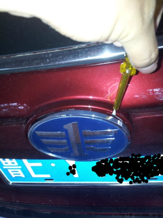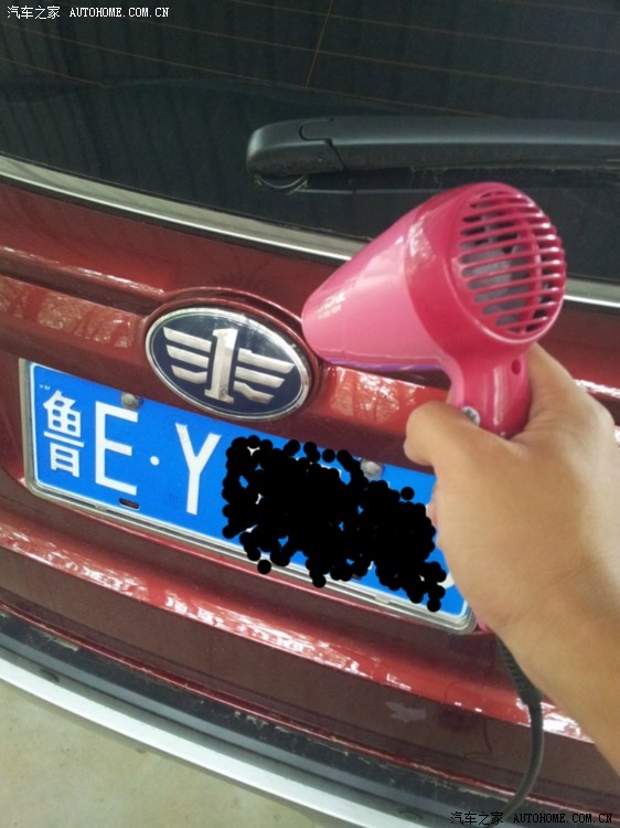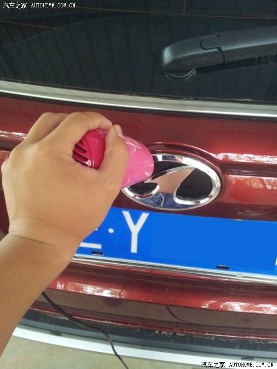 吹风机上,有点急功近利,烤的时间不长,用小平头螺丝刀往下扣得时候把那个圈圈上的车漆给蹭了