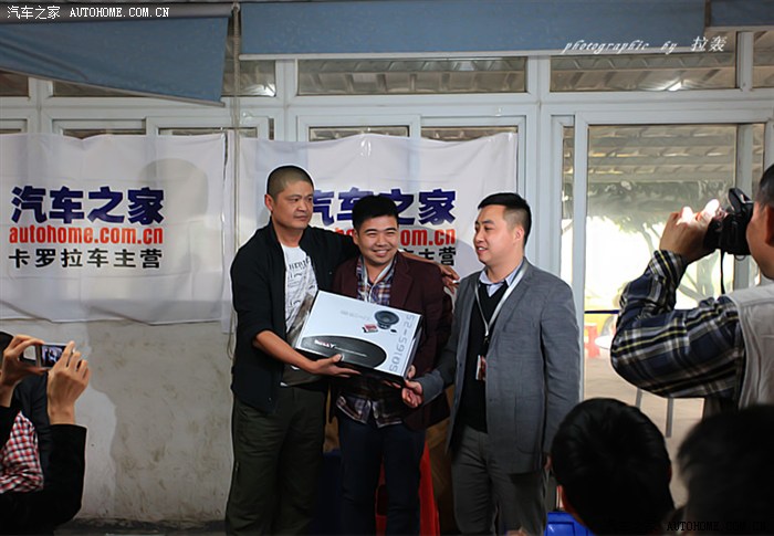 同样获得汽车音响喇叭,当然少不了和抽奖者71大哥与赞助者侯总合照一张了