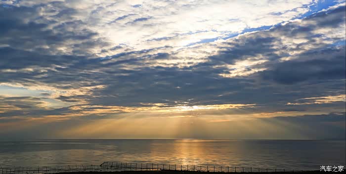 第三天早上6点半我就起来了,独自走到了湖畔看到了青海湖安静的早晨,阳光穿过厚厚的云层洒在了湖面上,显得静谧而神圣,不禁让人敬畏。