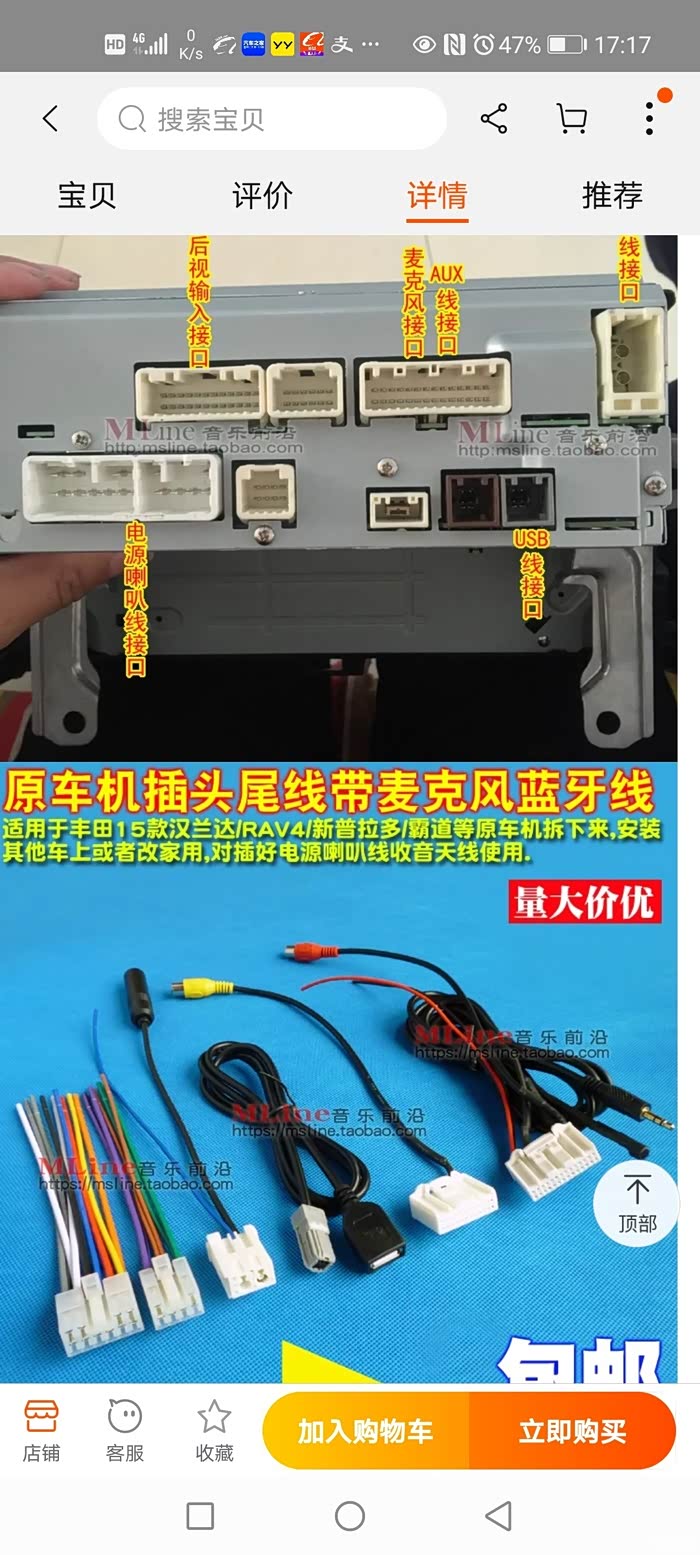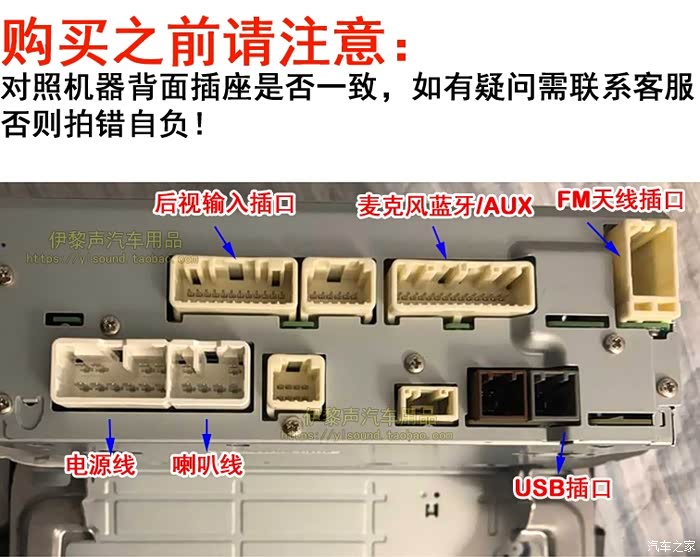 车子收音机坏了,烧保险,去找改装店大哥给看看,我还以为是线路搭铁,结果是机器坏了,我又没钱换大屏导航,就让他给我找个收音机,然后他就送了我一个汉兰达升级导航换下来的CD机,拿给我之后就在某宝上找后尾插,下单,下面看图解释吧!
