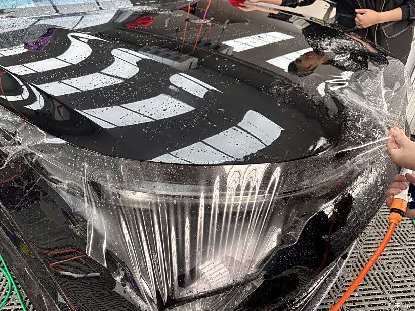 黑车还大,车位又窄。准备贴车衣,先把玻璃膜贴了。