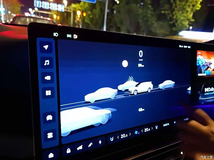 HUD的显示效果不错,有立体感,内容也比较丰富,确实降低了驾驶员对仪表盘的依赖。不过如果hud上面的路面交通信息能再多一些车后侧的位置车辆显示就更好,这样也可以方便驾驶员判断后侧是否有车辆,方便驾驶员进行变道。