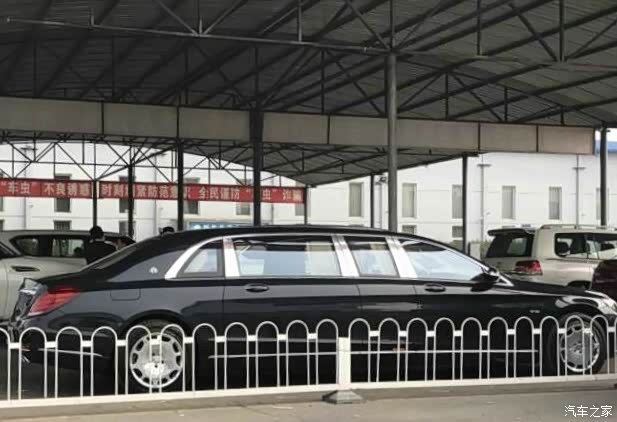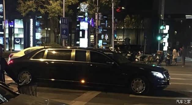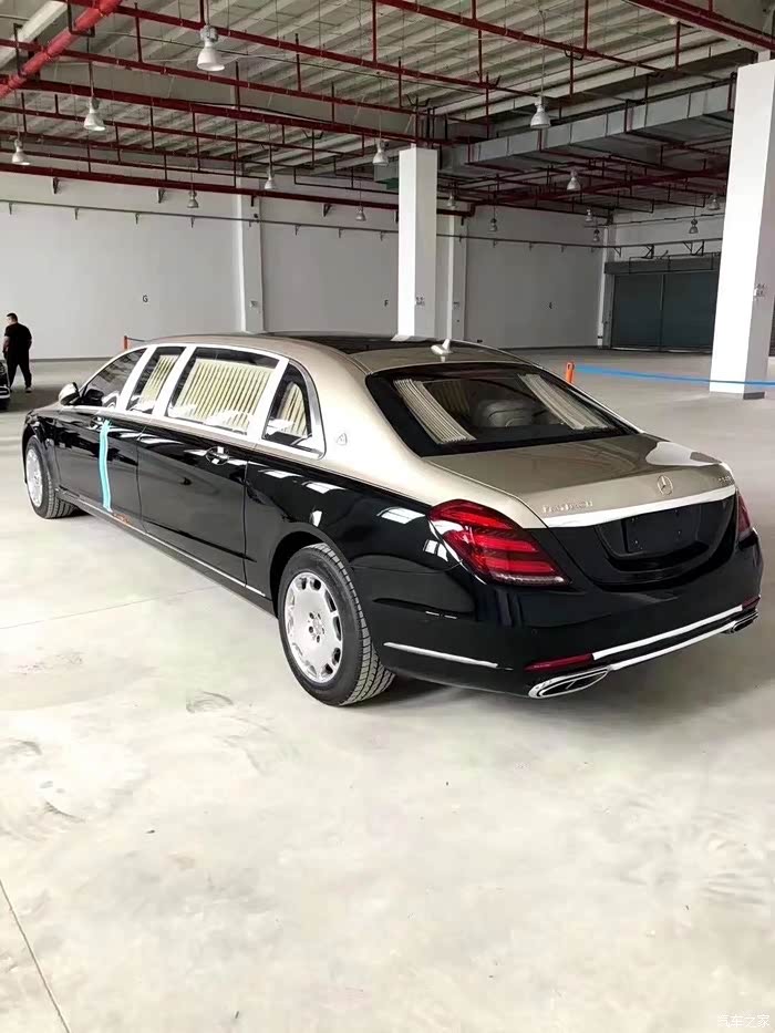 国内首辆黄牌奔驰普尔曼,左边刹车灯上面是Maybach迈巴赫的英文字母,右边刹车灯上面是型号S600,全球最长的量产乘用车之一,这车和普通的加长林肯不一样,这是奔驰原厂车型,全长约6.5米,比迈巴赫S600长了1米左右,比以前的W240迈巴赫62还长30厘米