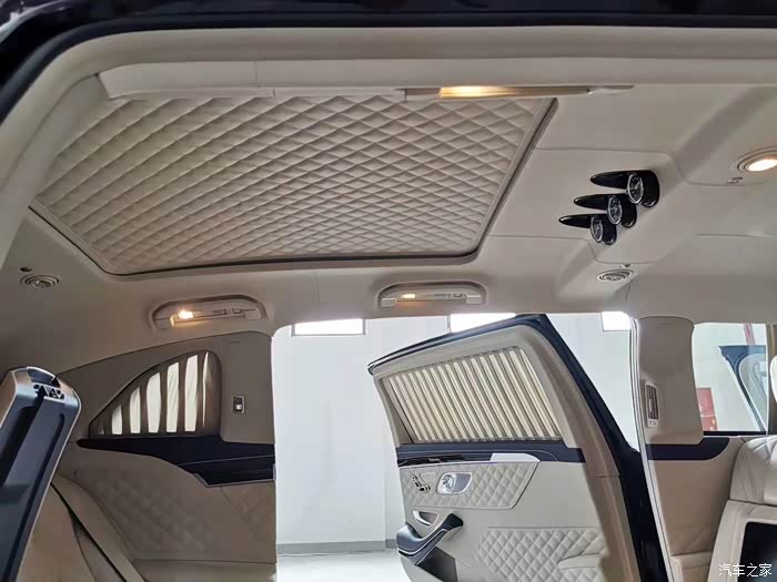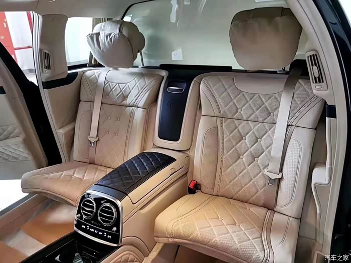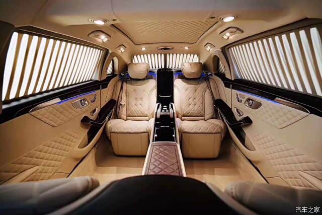特别是在后排!我们知道这款车是款加长版本,所有的加长全部都兑现在了后排的进空间上,如此大的一个空间竟然只标配了两只独立的航空座椅,确实看起来有些奢侈。并且整个座椅全部可以平放,瞬间变成了两个独立的大床,而且还带有全身按摩功能!整个的车门的内衬都是高品质的真皮包裹,且是一种菱形的结构。