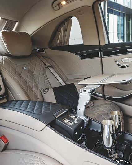 后排配备了一个可容纳三支香槟的小冰箱。标配的香槟杯还带有迈巴赫的logo彰显其身份,和劳斯莱斯上的水晶香槟杯不一样的是,迈巴赫香槟杯采用了比较牛逼的材质,据说怎么摔都不会碎。