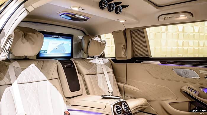 座椅的前排还采用了一块超高清的显示屏,影音效果还是不错的. 重点是上方车顶和门板上的24个音响组成的环绕声,开了音乐都感觉是身临现场听演唱会了吧。BurmesterR高端3D环绕立体声音响系统以身临其境的声音效果,营造出可以媲美 歌剧院或爵士厅等特殊表演场地的绝佳氛围,带来超乎想象的听觉享受大音,希声。