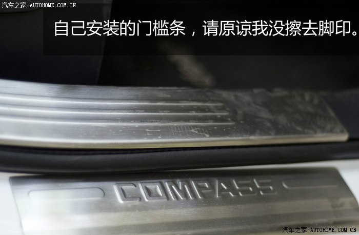 还是回来说小指吧,上论坛我只上翼虎和小指,上翼虎那后来纯粹是看热闹了,进小指是看车友的用车体验和各种作业,低调的外形,简单的内饰,虽然有许多小毛病,像个男人,但是没有先天性毛病,而且花费也不算高。JEEP在德阳没有4S店,所以嫌麻烦也一直没有去成都看过车,只是在大街上偶尔看到一辆小指,默默地行注目礼。我一直慢慢地提升自己的内功,直到今年6月,在论坛看到组织的看车活动,遂下定决心报了名,22日坐火车、倒地铁、转公交,辗转到机场路的4S店,第一次亲自拉开车门,坐上去仔细感受一番。当天价格没谈好,败兴而回后,更是细心关注各种信息,然后在论坛看到深海同学发出的团购号召令,遂马上取得联系,后来又联系到几位准指友,在群里面讨论好各自需求,邀约7月13日去4S店仔细谈。为了这天,深海同学几次从都江堰不辞辛苦到成都与销售磨嘴皮,把大的优惠都谈得差不多了,只剩下细节问题,在这里,真心感谢深海,省了我们不少的事情,从第一次进4S店到提车走人,我只去过三次店里,只见到一次半我的销售。13日,我、深海、栀子妹妹、双手妹妹和他老公,我们相约在了4S店,当天我们就谈好了四台小指,全是白色舒适版,优惠两万,送导航、倒车雷达,大家都参加了银行按揭50%,免息两年的活动。开始说好的送前档膜和前排两侧量子膜,结果订车合同销售写的送车身膜(量子膜),不知道其中有猫腻,提车销售居然说不送前档膜,合同写的车身膜就只有前排侧档,买的没有卖的精啊!13日订的车,25日去交的首付。8月8日带上老婆儿子兴冲冲地去提车了,此前从论坛下的提车作业打印在纸上,结果基本没用上,因为只有一台小白指,只是看了下漆面,检查下发动机仓,听了下发动机声音,简单看了下顶棚有没有漏水,连底盘都没有检查。然后剩余的事情就交给销售去做,我们全家打个出租去锦里逛去了。