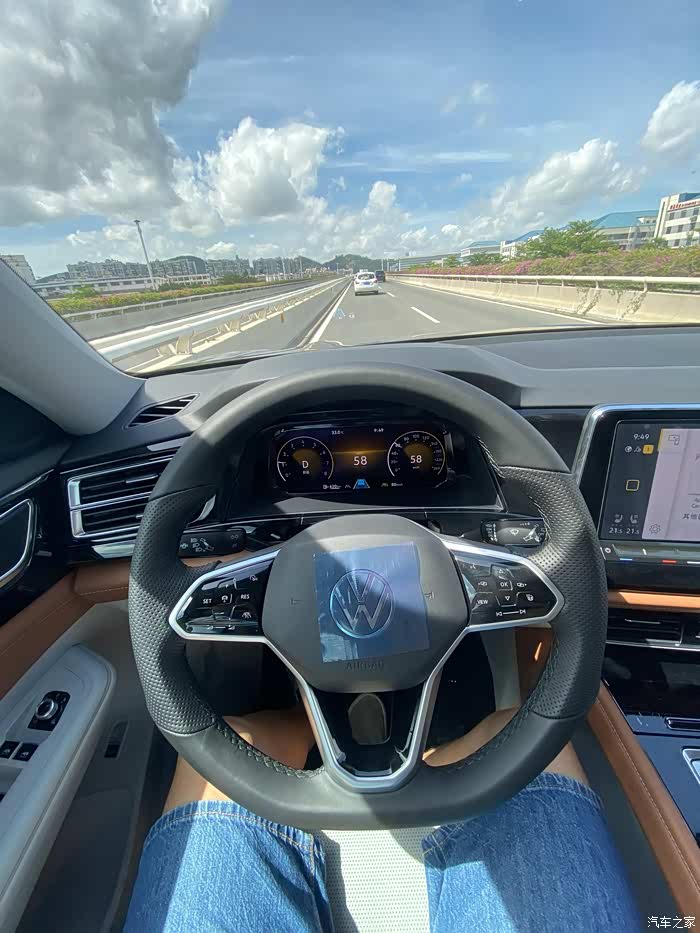 车子自带的自动驾驶还不错,一路上70%的路都是开着自动巡航以及车道保持。个人觉得它的自动驾驶比特斯拉的好用,因为特斯拉一打方向,车道保持就取消了,而途昂的不会。但是感觉途昂的车道保持不是很好,有点靠边线,特别是靠右边线,而特斯拉会一直稳稳的保持在车道中央,看来自动驾驶精确度方面还需要提高。