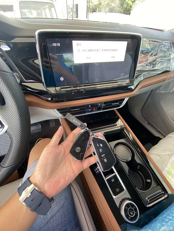 接下来又是漫长的等待。到7月份,终于通知说说车子生产好了。看了铭牌,6月19日生产的赞新车辆。等待的郁闷心情一扫而光。马上屁颠屁颠的拿着合格证去办完税证明以及拿临牌。接着自然是去4s店提车了,尽管有心里准备,但是被车子的巨大体型震撼到了,毕竟以前买的四台车全部都是两厢或者三厢的轿车。车厂也是小气,油箱的油只剩下大概10公里,一共加了69.84升,去加油站的路上开着车都不敢深踩油门,对此要给大众一个差评。两把钥匙很好看,现在的新能源车动不动就是卡片钥匙,得鄙视下这种偷工减料的行为,作为进口model 3的资深韭菜,在此重点鄙视特斯拉。
