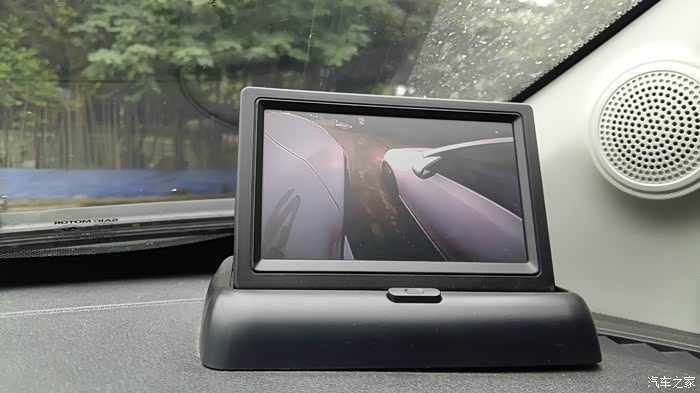虽然我自称“老司机”,的确鲜有擦挂。但右前盲区始终是拿捏不准的地方。于是右前耳朵下面安装了摄像头,辅助右侧盲区的观察很有帮助。在过一些极限路段和狭路穿梭的时候,也更有信心了。只是腾二娃8寸屏不能接线,只好又买个外置小屏。把线暗埋,电源接在烟缸处,聊胜于无。