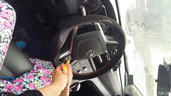 话说这段时间又折腾了一番。一直觉着方向盘瘦弱,唯有骨头。心有不甘,买来运动款真皮手缝方向盘套,握感翻毛绒面,不易打滑。而且设计成平底的感觉,更加运动范儿。价格也不菲,249元,加工50元,投得贵!还有车门感应迎宾灯,漆黑的野外也不怕踩着癞疙宝了,有木有炫酷的感觉?直接给MG提升品牌价值感的节奏。