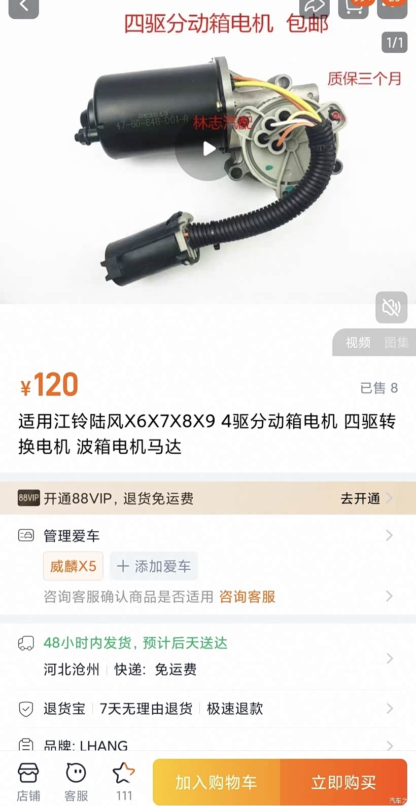 14.威麟x5如果出现高四可以挂上,再挂低四仪表盘上的四驱标志就闪,看论坛里友们帖,结和本车实际故障表现高度怀疑四驱电机处有故障。昨天去了自己了解的一个电工处。拆下四驱电机。撬开四驱位置模块。用酒精清洗了接处点。给电机齿轮加了油。装上试车高四低四均挂上。花了八十块大洋,次经验共大家参考,或者更换一个新的,与长城的通用:
