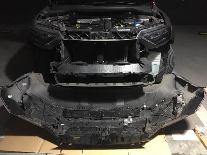 拆下前杠后把防虫网用扎带固定在进气格栅里面!