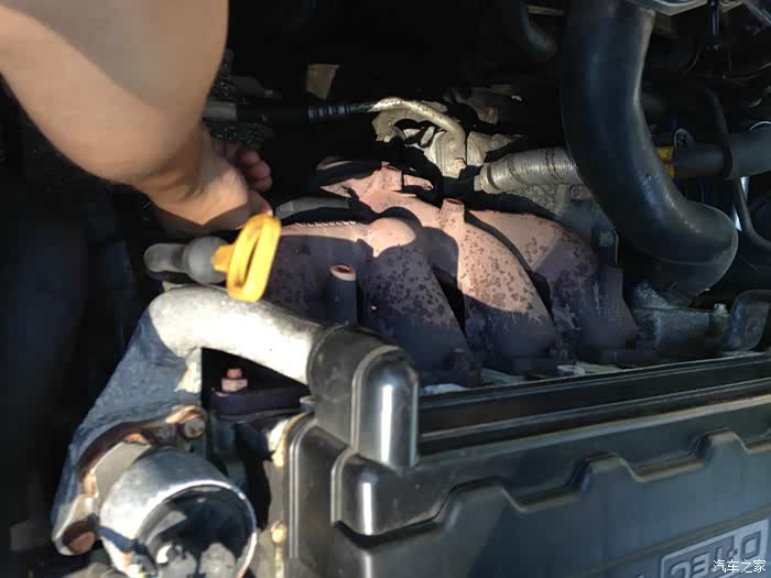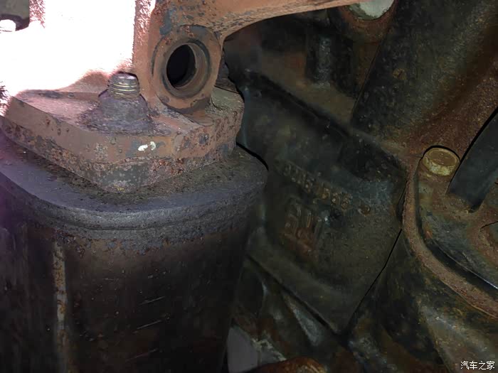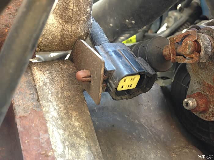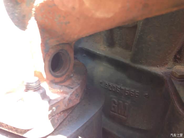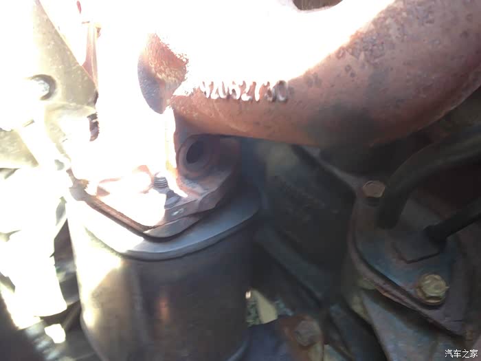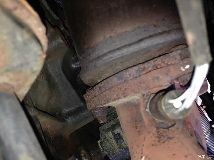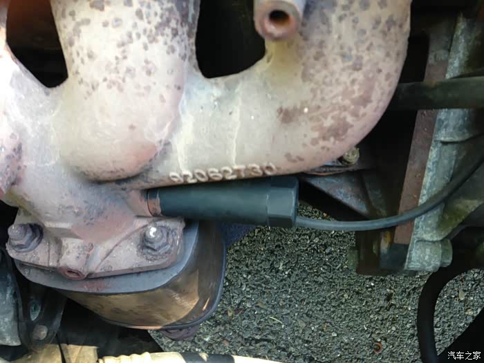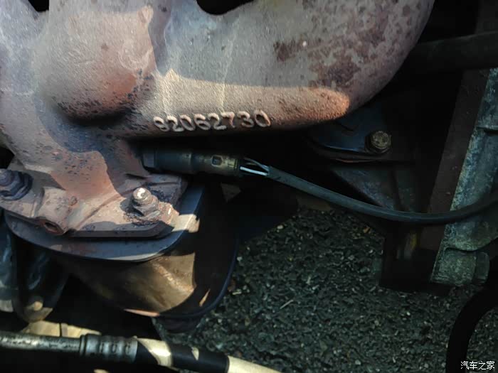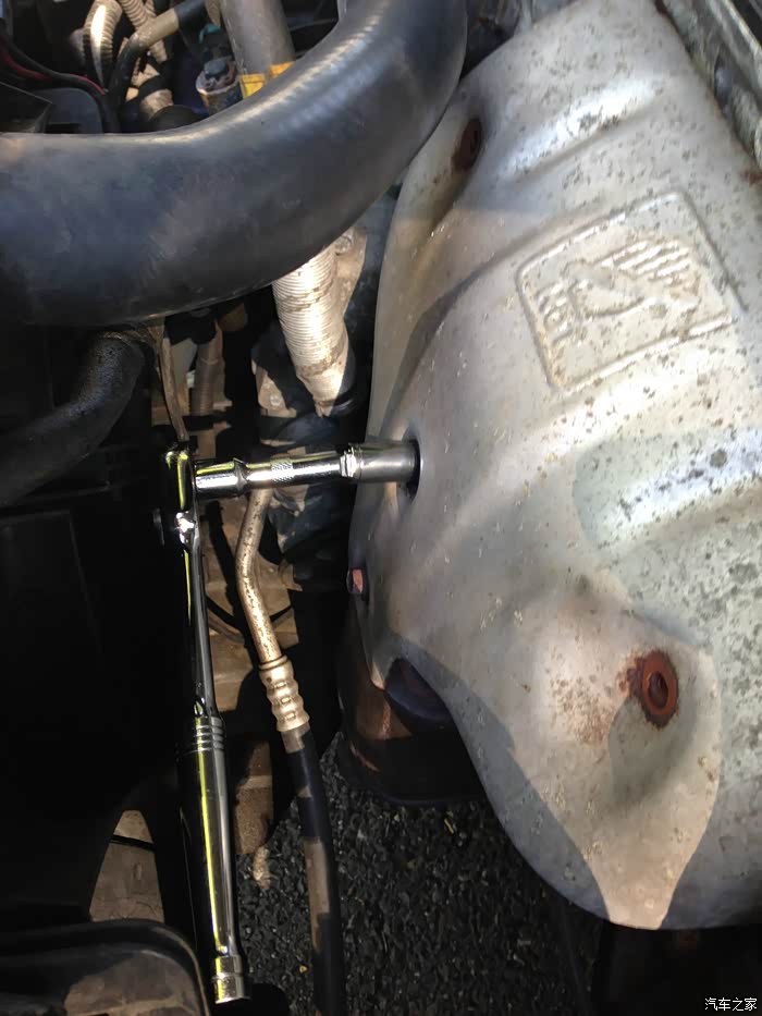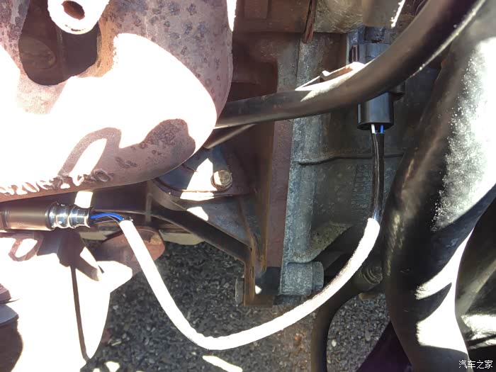 再来看看后面。 我们用加力杆两人一起用力才拧松了氧传感。当然这个步骤忙着干活就没有拍了。