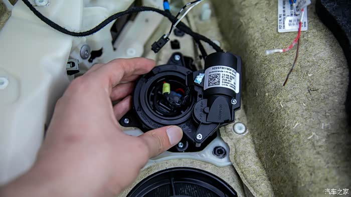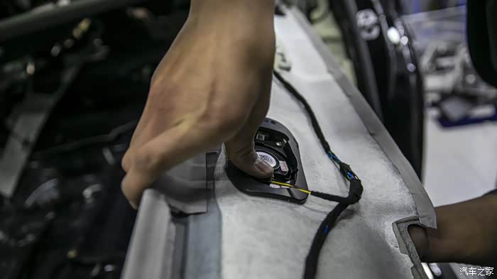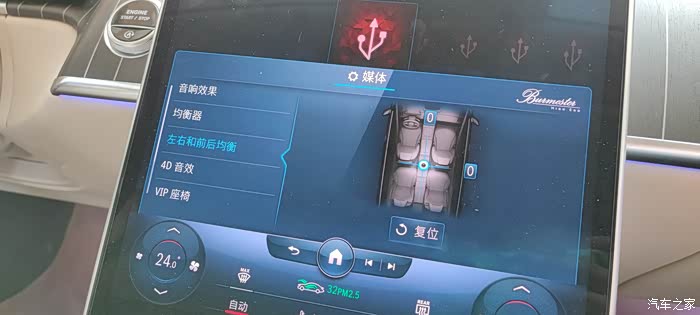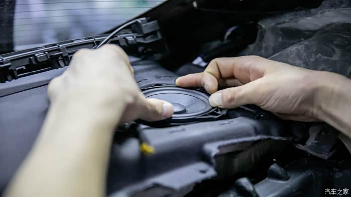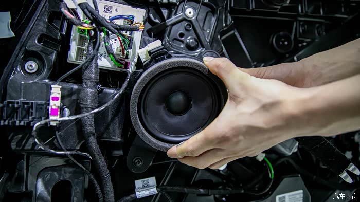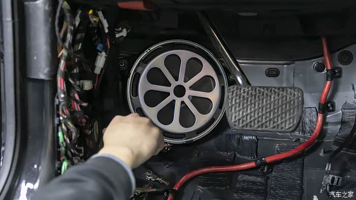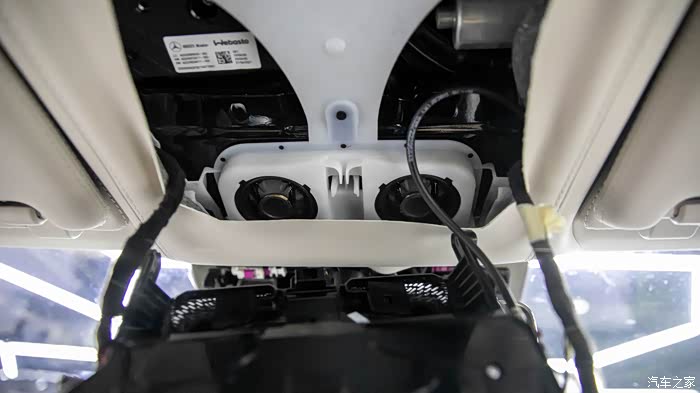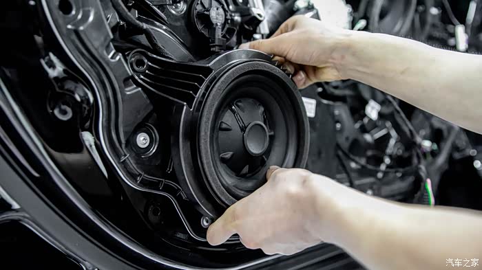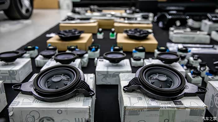 具体安装位置是 前排地毯底部低音*2、中置中音*1、中置高音*1、眼镜盒高音*2、四门高中低音*12、顶棚中部高音*2、顶棚后部高音*2、前排座椅内部高音*4、后排环绕中音*2、后排环绕高音*2、后尾箱低音炮*1全车31个扬声器8个谐振器,1大1小功放,输出功率1750W。