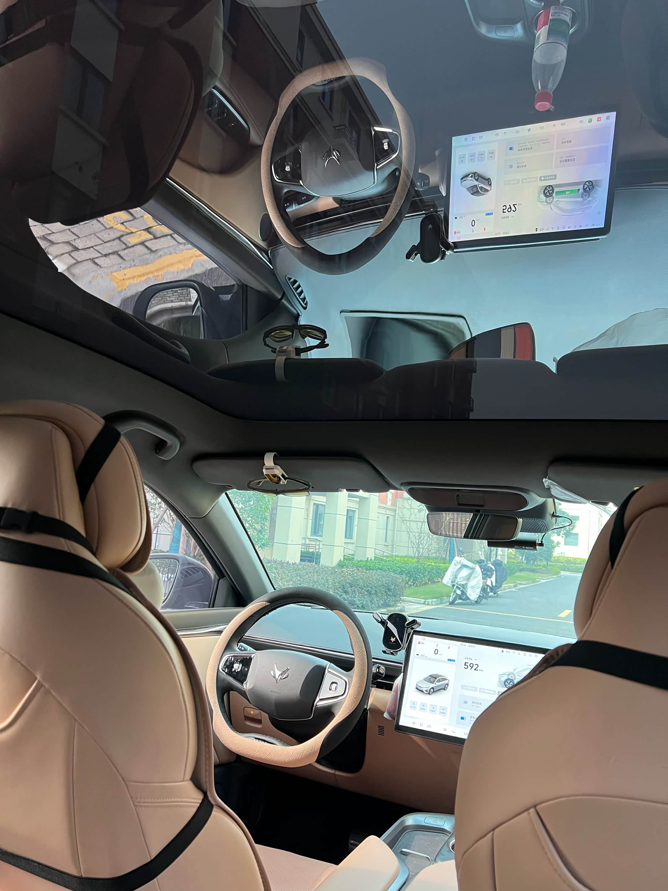 ,阳光毫无保留地落下来,晒在手臂上暖融融的。冬天的太阳不烈,却带着穿透感,连毛衣纤维里都浸满了暖意。以前坐别的车,想晒太阳得摇下车窗灌冷风,现在有了全景天幕,像把整个天空都拉进了车里,抬头就是流云,低头就是洒满阳光的方向盘,连心情都跟着亮堂起来。