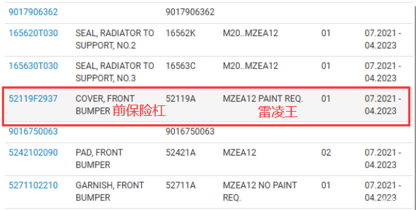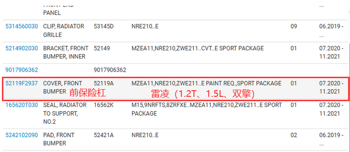 21-22款的可以,主体零件(52119-F2937)都是一样的,不用换,然后把中网其他附件换成雷凌运动款就行,23款以上的话需要提供下VIN查零件才能告诉你