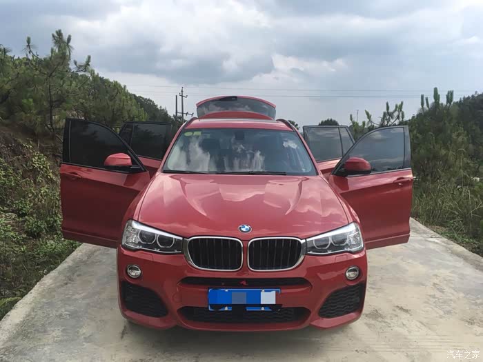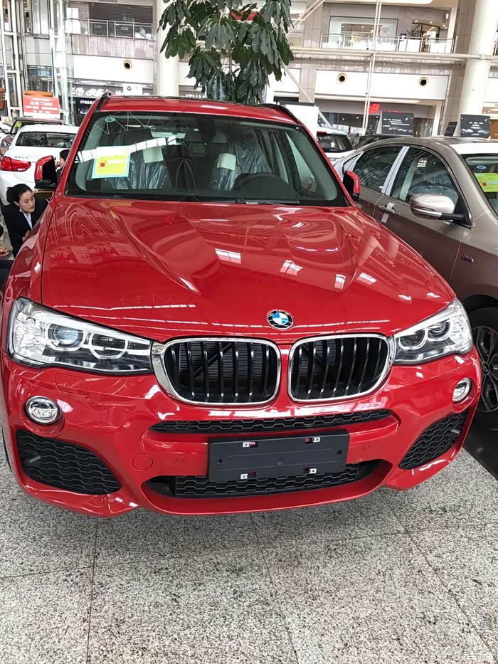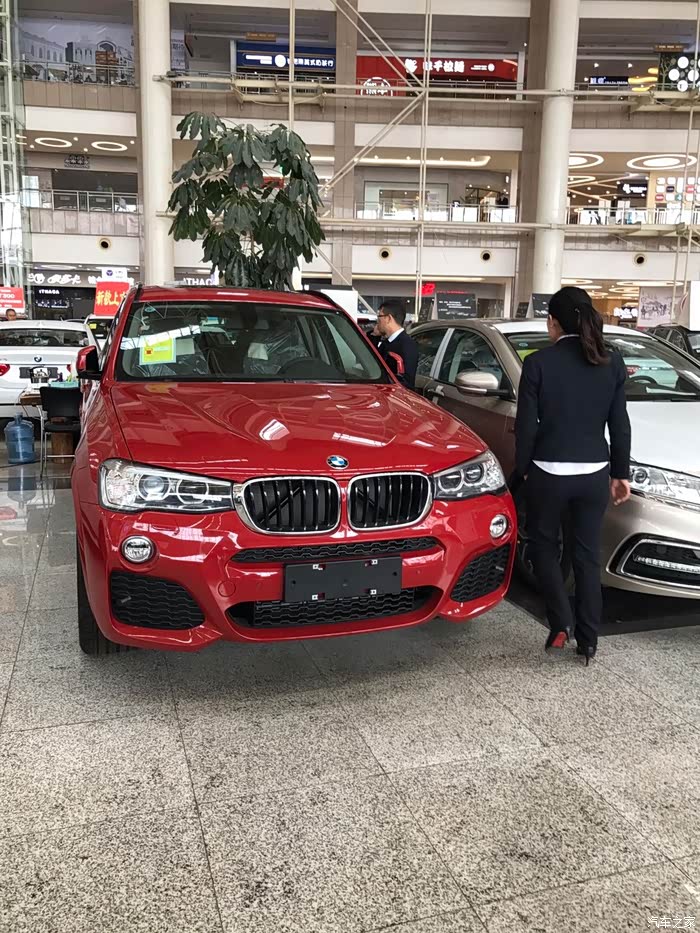 5 宝马 X3 看了视频 看了论坛 看了对比 锁定20iM 于是开始联系4S店。可能是新款要上市的原因。价格很给力。电话上基本联系好了以后。当天晚上就叫朋友开车送我们出发。第二天一早销售还在集合开会。我们就进店了。第一步看车。销售讲讲配置。不到10点就谈妥了。刷卡全款。谈的期间销售非推一款打了折1万多的摸。我就是没有要。无奈裸车4S店不卖。还是被强奸了1万多的装饰。记录仪。舒适进入。全包围脚垫。尾箱垫。还有一些。 1万多的保险。出了单子 出了发票以后。要她赶紧在交警队下班这前办好临牌。无奈早上没有办好交警队就下班了。好了等等吧。反正弄装饰也要一点时间。这期间跑到当地的花之城玩了一下午。5点没到销售打电话来说临牌好了。装饰也好了可以过来了。当时心情那个鸡冻啊。终于我也拥有蓝天白云了。打车回4S店。