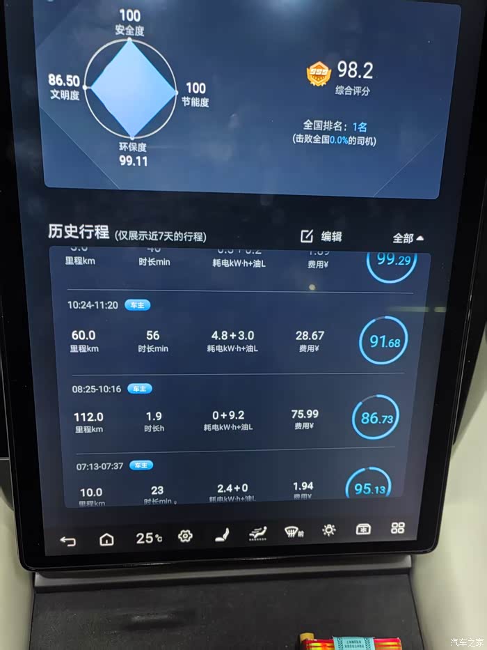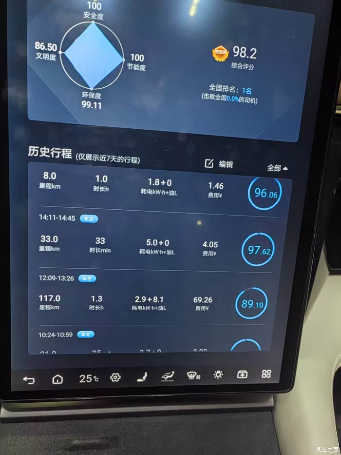 油耗方面,平时在城里我基本都是用电。如果用电比较少,两天充一次电就行;要是用得多,那就得一天一充。跑高速的时候,我的车速一般保持在110码左右,偶尔也会跑到130码。以前开油车跑高速,我基本都开到140码,换了电车后速度有所降低。目前来看,跑高速时的油耗大概在9个左右。