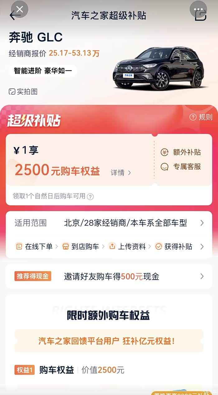 如果你想买奔驰GLC,那么现在就是绝佳的机会!奔驰GLC作为豪华SUV市场的明星车型,凭借其卓越的性能、豪华的内饰和先进的技术配置,一直深受广大车友的喜爱。而现在,汽车之家特别推出了超级补贴活动,让你以更优惠的价格将奔驰GLC开回家!