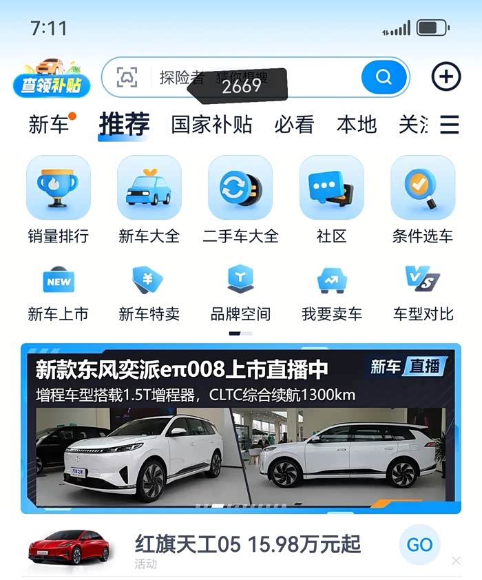 方法2:打开汽车之家App,搜索2669,点击超级补贴活动进入,找到想要购买的车型点击领取。