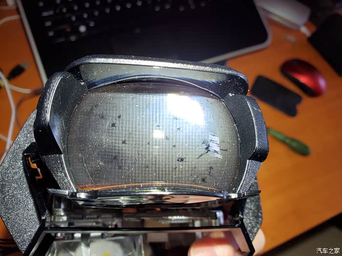 白内障,记得几年前许多带透镜的灯会有这种问题,时间越久越白。