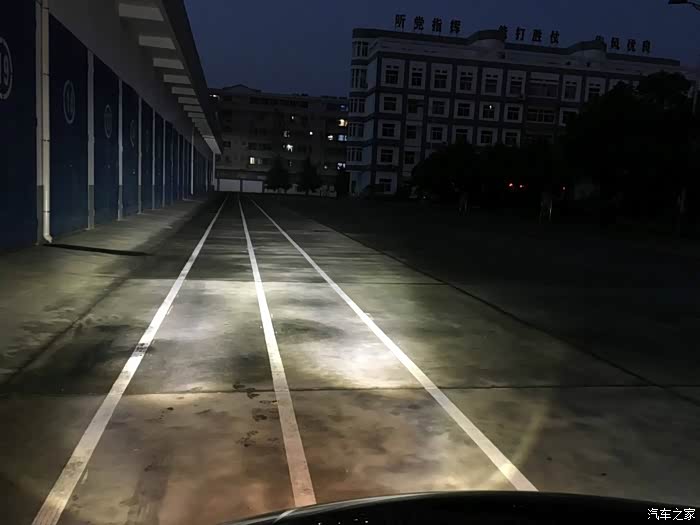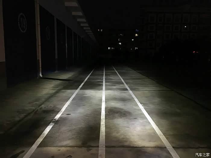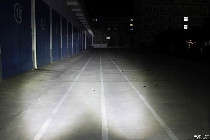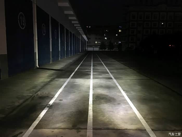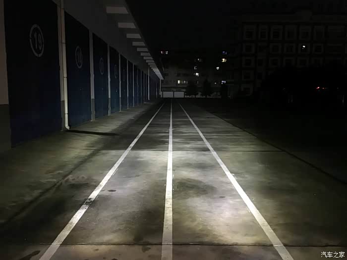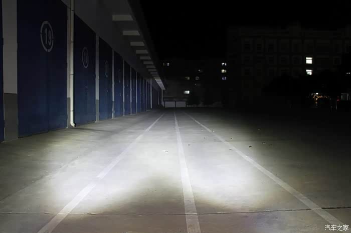 天还没有完全黑,已经迫不及待进行测试灯光了。车子放到百米跑道的尽头,也就是你看到的对面墙角处绝对有100米了,嘿嘿……