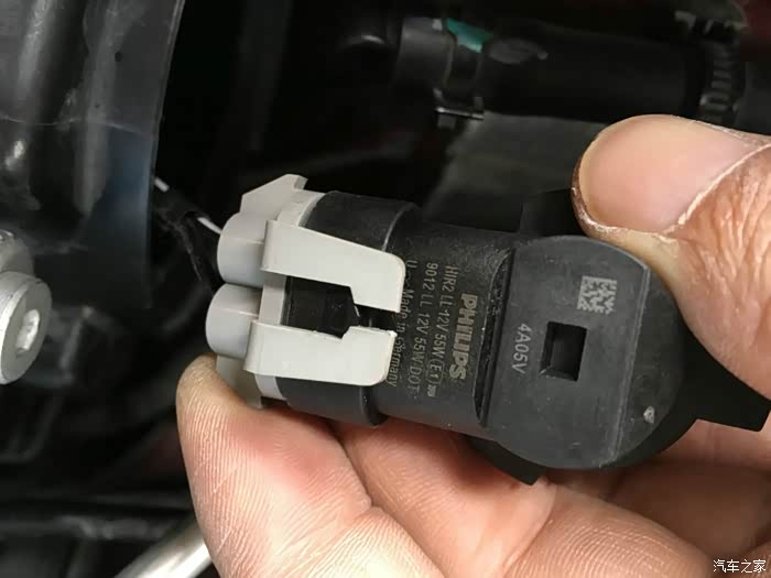 原车卤素大灯逆时针旋转直到卡扣可以从灯座中取出,此时的操作最好用个手电筒照明方便操作。