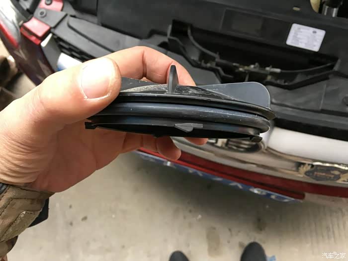 难点:防尘盖的拆卸。主要是没经验或按老经验办事,以为就是拧就行了,我也是费了不少周折,硬撬甚至撬断一个齿的情况下也未能打开,最后打电话咨询车友“星空006”(换过氙气灯)说是往外拔着拧,果不其然,轻松搞定,拧下后的防尘盖,大家看看这卡扣,我想你应明白为什么要拔着拧了吧,真是听君一席话胜读十年书!给006点赞!