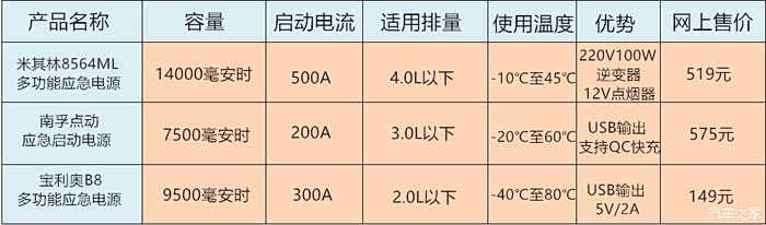 这三款应急启动电源分别是(从右往左):米其林8564ML、南孚NFYD004、宝利奥B8
