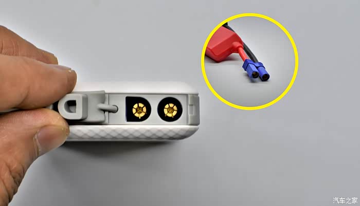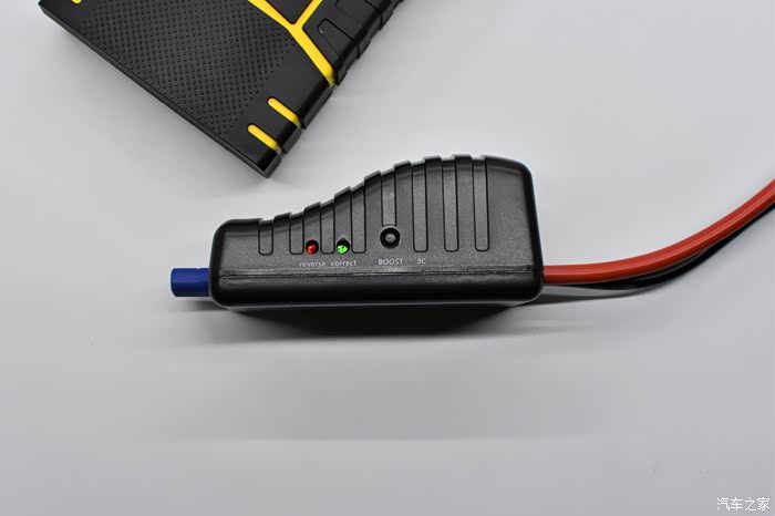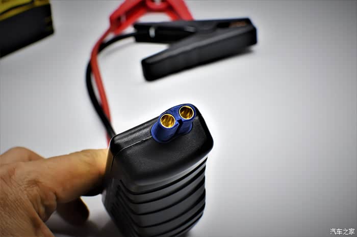 一长一短的电瓶夹子设计,红色盒子是保险盒,应急接端口为DO型!