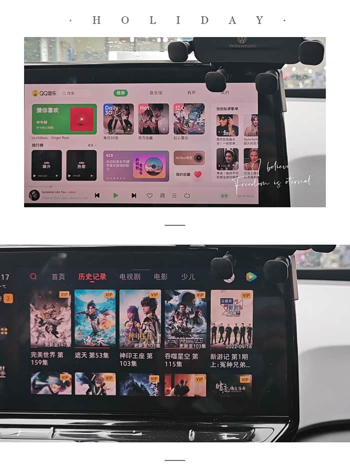 1.享受娱乐:在长途旅行或停车休息时,可以尽情享受音乐和视频带来的娱乐体验。我就经常在等人的时候打开车机的视频,看看动漫,追个剧,享受一下惬意的车内时光,毕竟免费的流量,不用白不用。
