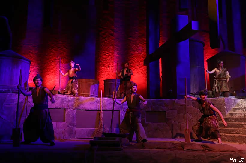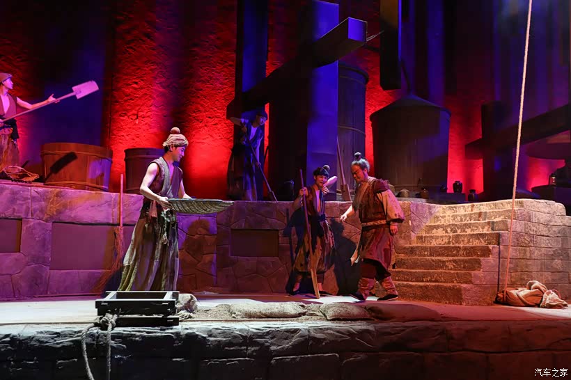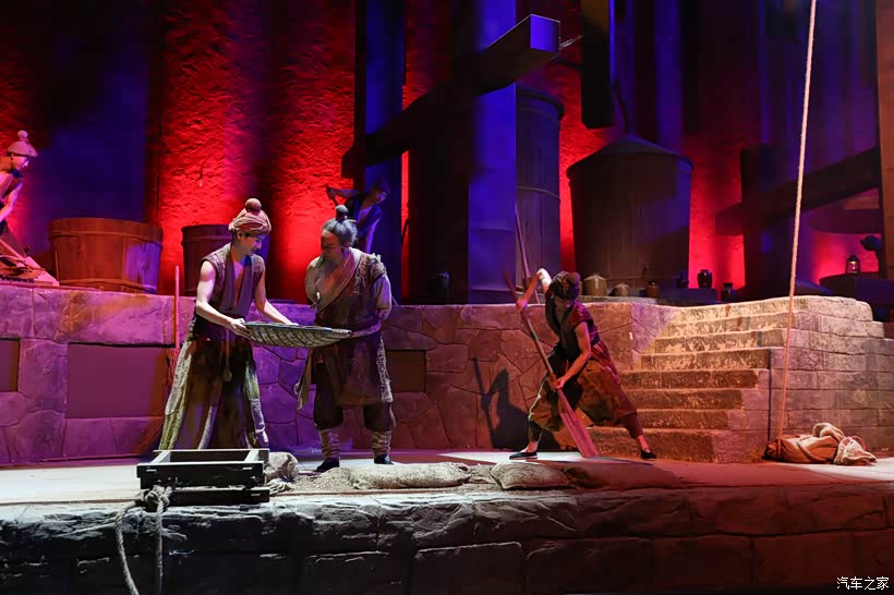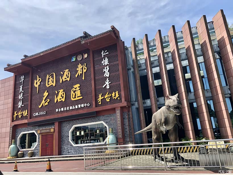 从四川隆昌再往贵州方向走,距离茅台镇越来越近。走到旺隆服务区的时候,已经满是茅台镇酱香酒的广告了。只是不知道为什么除了酱香酒,旺隆服务区里还摆放了一只巨大的仿真恐龙模型。莫非是因为龙与隆同音,又或者这里曾经是恐龙生活的地方,不得而知。从四川到贵州,一路多是蜿蜒盘旋的山路,连续上坡的时候,这台奔驰商务的2.0T的发动机让人感觉有点吃力,不再像平路上那般生龙活虎,不过好在一路倒也平安无事,直到驶入茅台镇赶上下雨的那天,在雨地里打了个滑,我们才发现轮胎已经磨得需要尽快换啦。换完新胎,又是好车一辆。到茅台镇除了喝酱香,还有个更值得干的事儿就是欣赏茅台镇的招牌演出《天酿》。通过茅台镇天酿景区演员的演绎,把一位老人倾其一生酿造酱香美酒的故事讲得形象生动。绚丽的光影,精彩的演出,在讲故事的同时,还把酿酒的工艺流程融入进去,端午制曲、重阳下沙,蒸煮、发酵、取酒、盘勾,仿佛那故事也是一杯天酿的美酒。