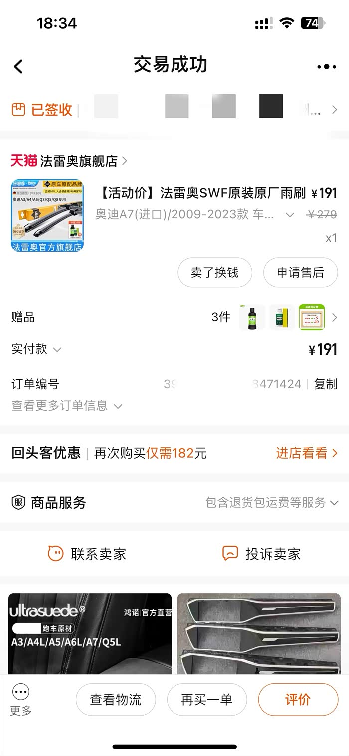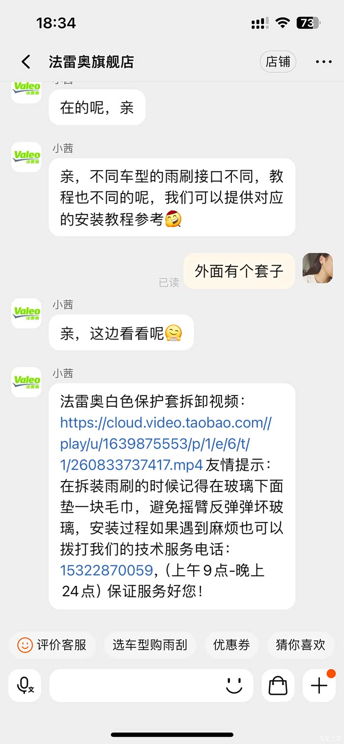 真的知道什么叫一分钱一分货了,强烈推荐法雷奥雨刮器,奥迪原厂件就他们家代工的,玻璃清洁效果自己看,无杂音,客服很热心又安装教程,自己动手拆旧换新也就2分钟完成,雨刮器和原厂完全没区别,不信自己去对比,很贴心的送了小礼品。之前用过不同牌子的雨刮器过几个月都会出现各种问题,不是橡皮长刺就是贴合不好有杂音,现在问题都解决了,以后都找他们家了。一位客观的a7车主留